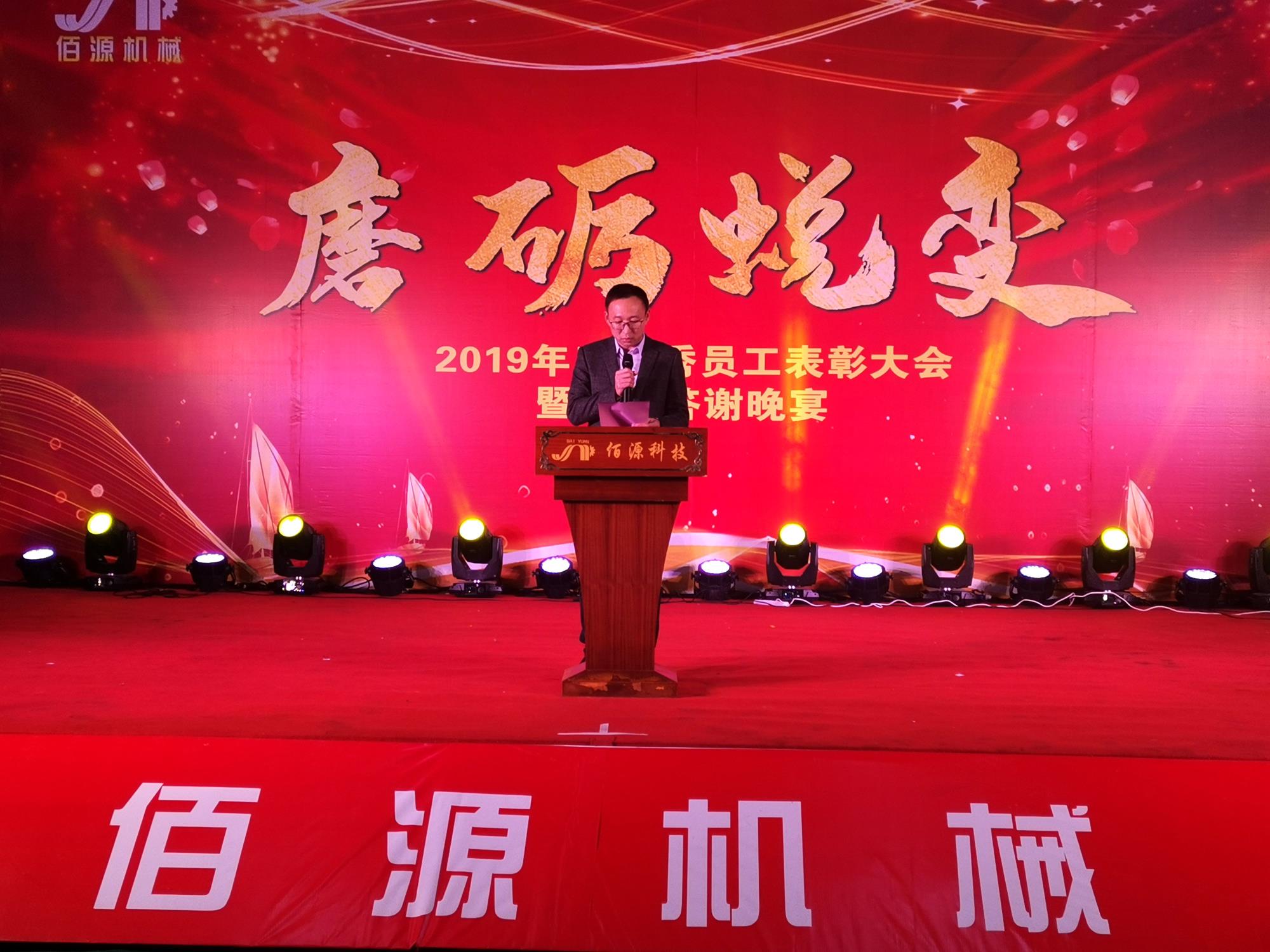 發布時間:[ 2020-02-19 ]磨礪蛻變,2019年度優秀員工表彰大會暨尾牙答謝晚宴報道2020年1月10日,泉州佰源機械科技有限公司于公司廠區內部舉辦了以“磨礪蛻變”為主題的2019年度優秀員工表彰大會暨尾牙答謝晚宴,近500名員工和嘉賓齊聚一堂,共饗盛典。對酒當歌,其樂融融,回望輝煌過去,把握現在,展望美好未來。2019年悄然過去,我們有成功,有喜悅…