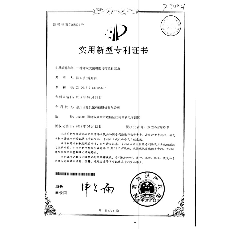 一種三線衛(wèi)衣針織大圓機的三角組件