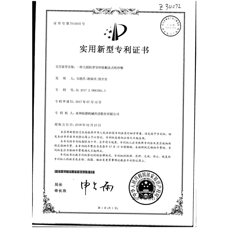 一種大圓機帶導紗輪翻蓋式喂紗嘴
